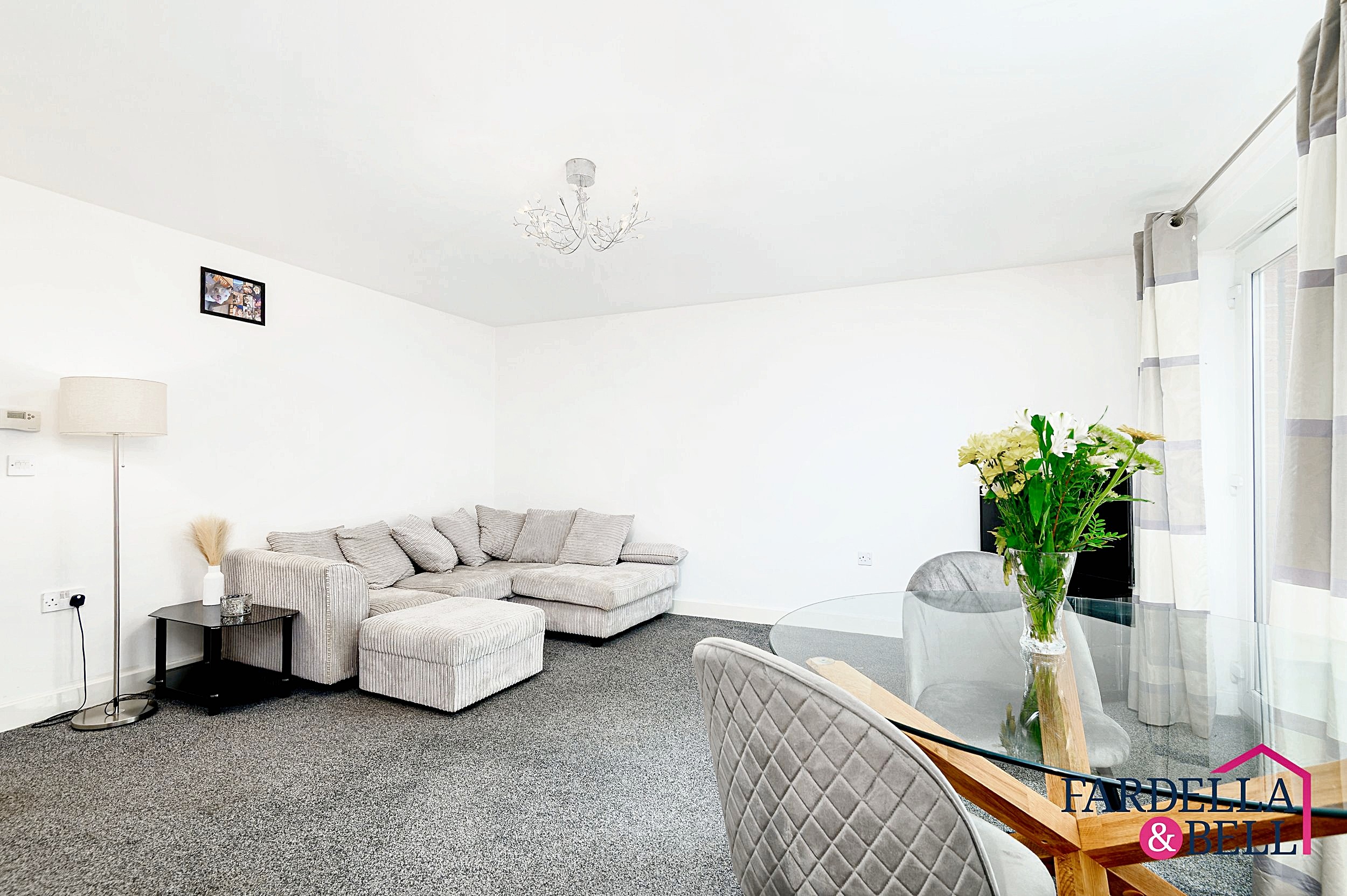This beautifully presented two-bedroom apartment combines contemporary style with comfort and functionality. The inviting open plan kitchen living area forms the heart of the home, boasting modern kitchen units, integrated appliances, and generous countertop space - perfect for both every-day living and entertaining guests. The spacious living area is enhanced by large windows that fill the space with natural light and offer a welcoming atmosphere, while a modern chandelier and glass dining table add a touch of elegance.