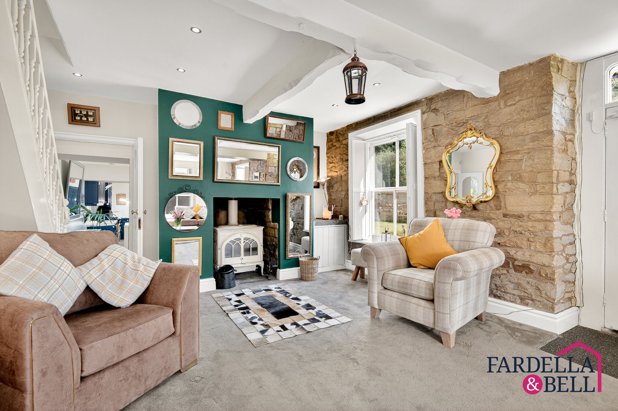 Charming 2-bed, 2-bath semi-detached cottage blending period charm with modern comfort. Traditional stone facade, landscaped garden, riverside setting, hot tub, wood-burning stove, modern kitchen, contemporary bathrooms, ample storage. Perfect blend of serenity, character, and luxury.