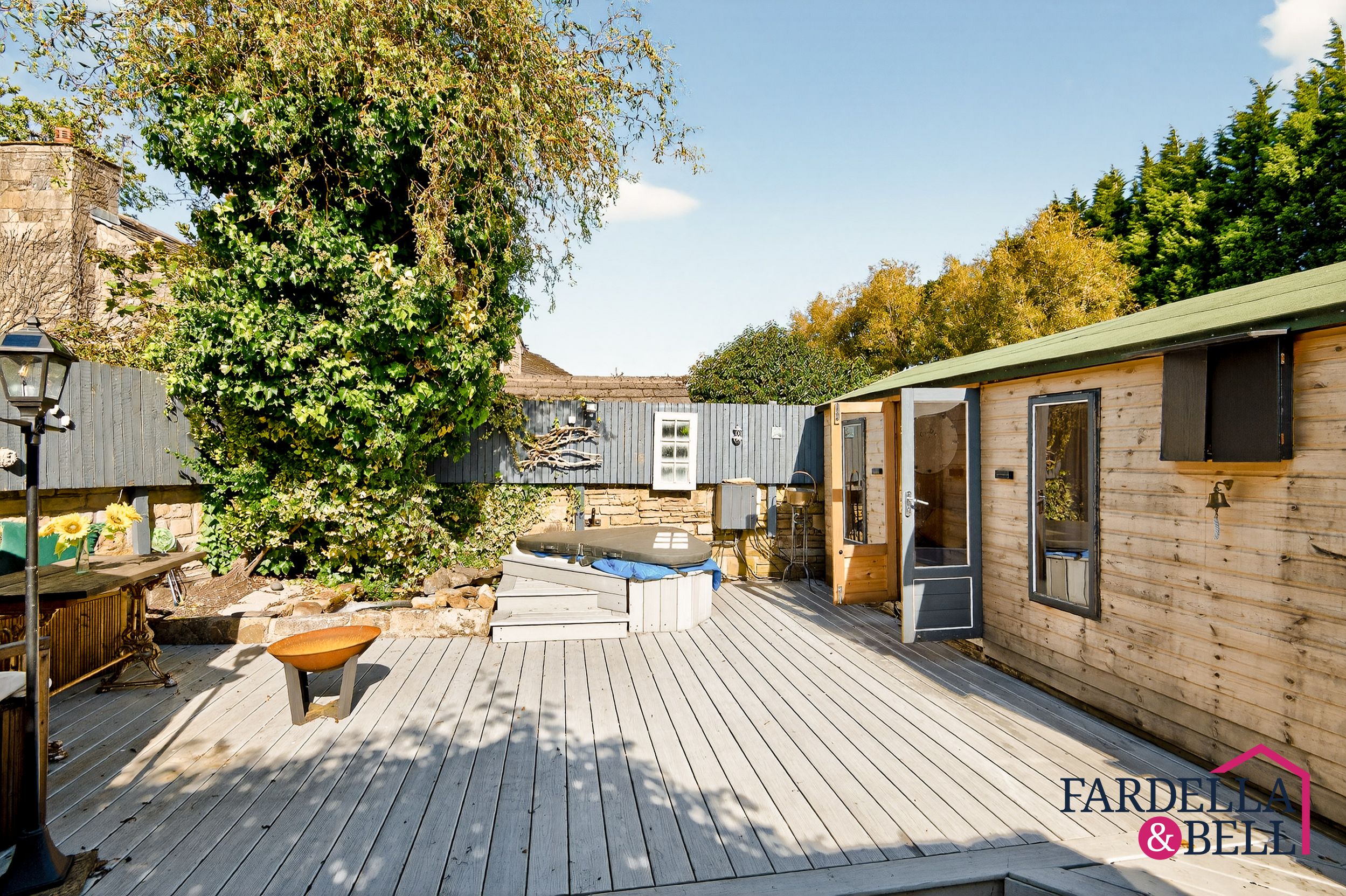This charming two bedroom, two-bathroom semi-detached cottage elegantly blends period charm with contemporary comfort. The property boasts a striking traditional stone facade, complemented by a spacious, landscaped garden that extends to a picturesque riverside setting. Mature trees and lush lawns provide privacy and tranquillity, while a decked patio area with a hot tub and inviting outdoor seating make this home perfect for entertaining or relaxation. A private gated driveway offers secure off-road parking, enhancing both convenience and peace of mind.
