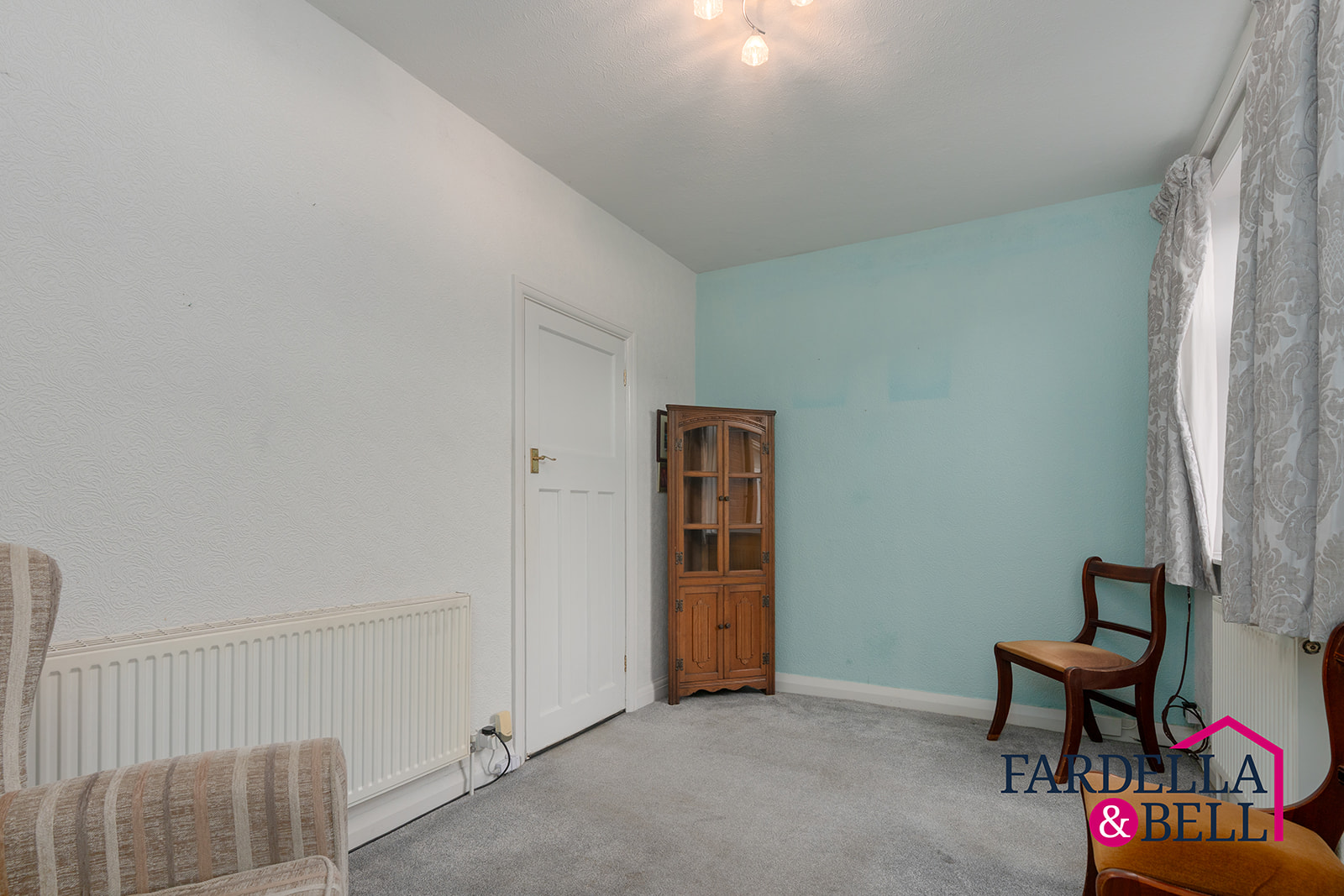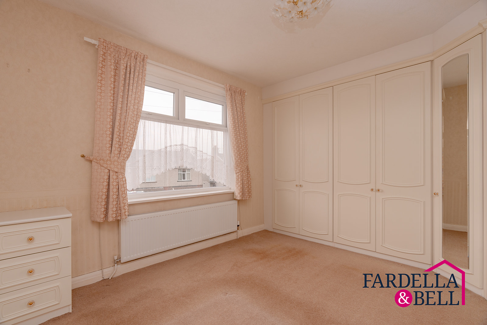 A bright and spacious second bedroom featuring dual uPVC double glazed windows, ceiling light point, fitted carpet, radiator and a full length mirrored wardrobe, offering excellent storage.