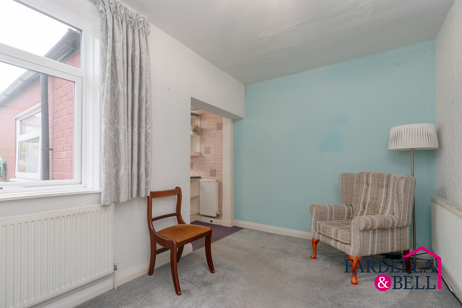 This beautifully presented chain free and vacant two bedroom semi detached house, set on a quiet cul de sac offers a harmonious blend of comfort, style, and practicality. The spacious hallway features a convenient stairlift for accessibility and plush carpeted stairs, making movement throughout the house easy and comfortable. Two generous reception rooms, including a cosy living room with an elegant fireplace and decorative wallpaper, provide perfect spaces for entertaining or relaxation. Each bedroom benefits from ample natural light and built in wardrobes, with mirrored finishes that enhance the sense of space. The galley kitchen is both stylish and functional, equipped with integrated appliances, ample cabinetry, and direct access to the garden. The contemporary bathroom features a sleek walk in shower, heated towel rail, and tiled walls.