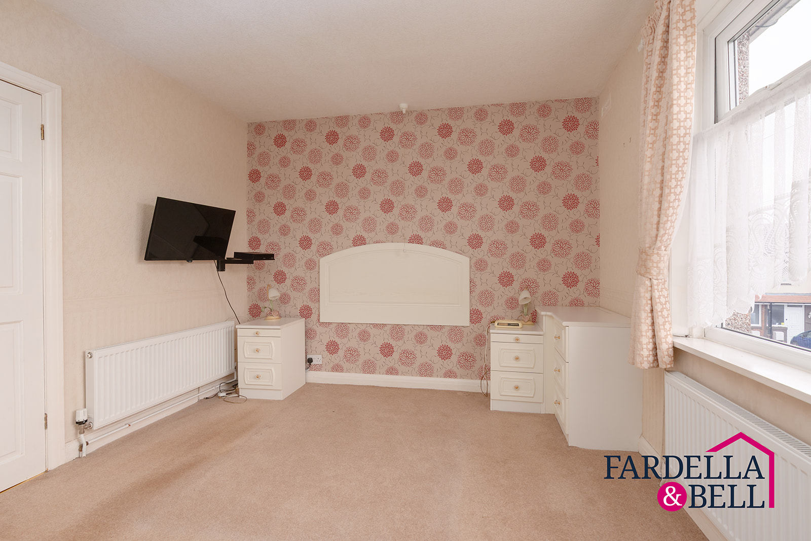 A spacious master bedroom with excellent natural light, fitted carpet, fitted radiator and generous built in storage, offering a practical and serene setting for everyday relaxation.