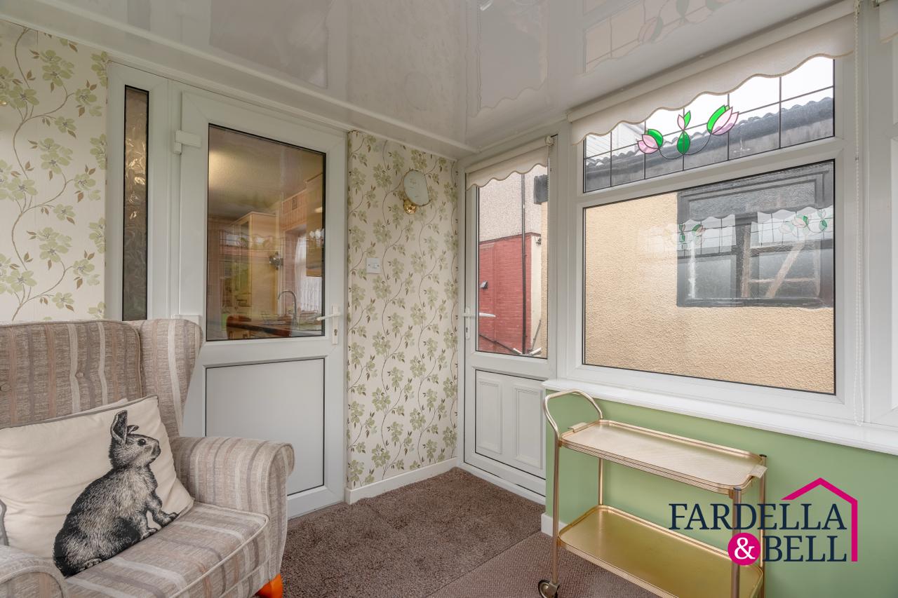 This charming conservatory features fitted carpet, fitted radiator, insulated roof to ensure all year round comfort and expansive uPVC double glazed windows with decorative stained glass, flooding the space with natural light and offering tranquil views of the surrounding garden.