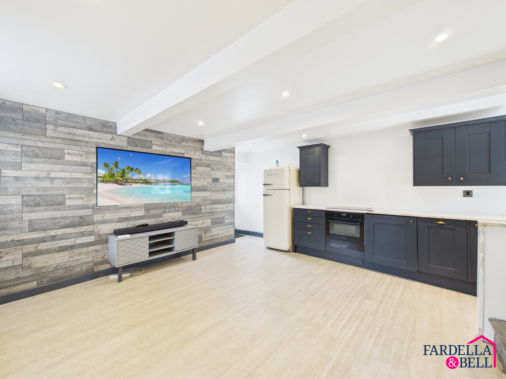 - Electric hob, oven, fridge freezer, and wall-mounted TV included in sale